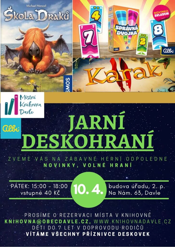 Zahrajeme si osvědčené hry Karak, Katan, Pirátské kostky, Škola draků, poznáte žhavé novinky v deskových hrách.